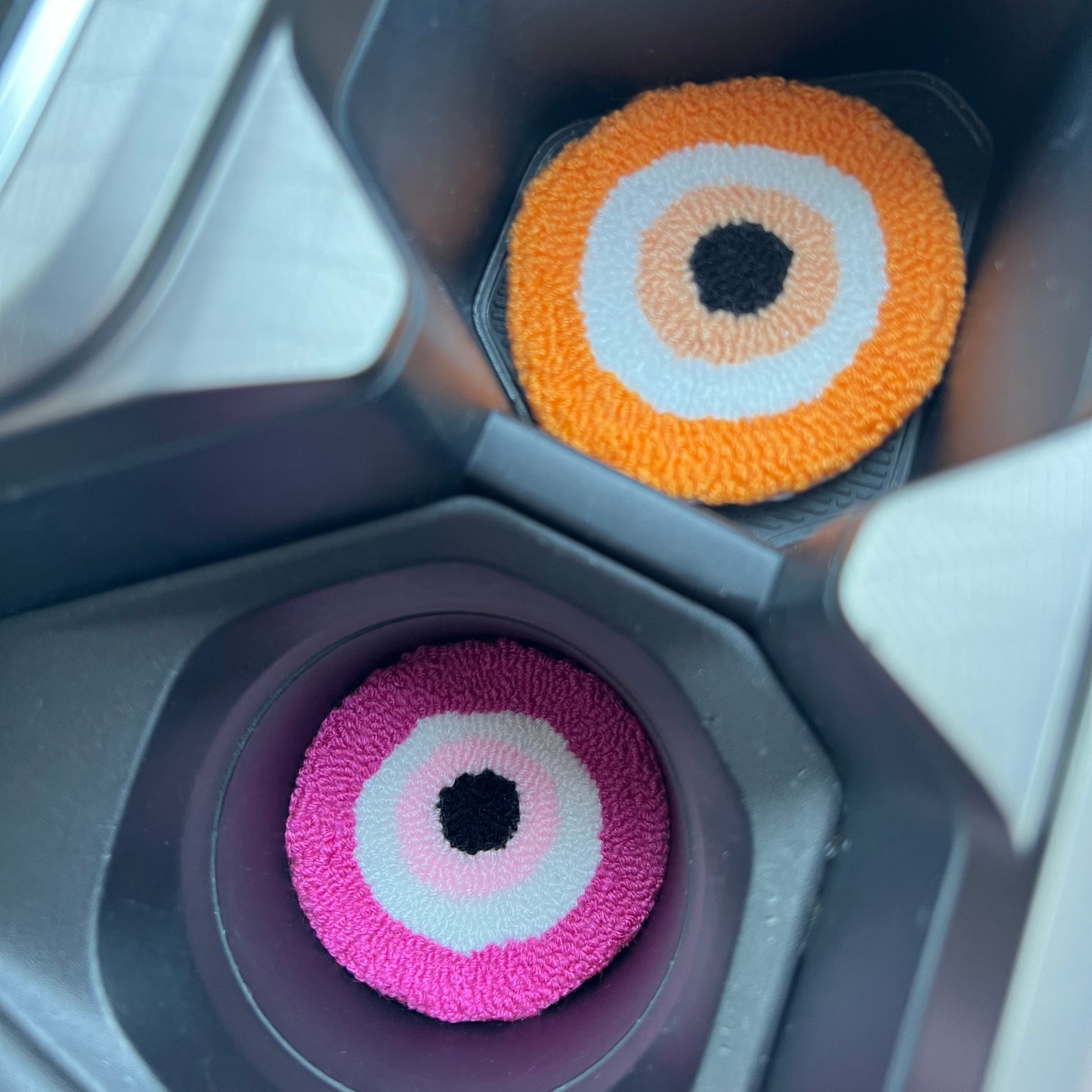 Bring a little joy to your car with these super cute, colorful car coasters! Handmade with love, each coaster adds a playful splash of color to your cup holders while keeping them neat and tidy. With their fun patterns and bright, cheerful designs, these coasters are perfect for adding a touch of personality to your ride. Easy to clean and made to last, they’re the perfect mix of cute and practical. Keep your car looking adorable, one sip at a time!